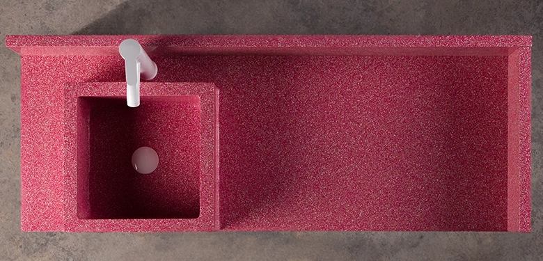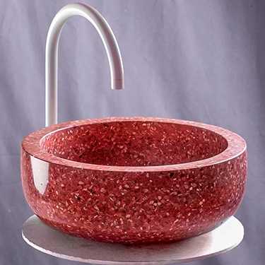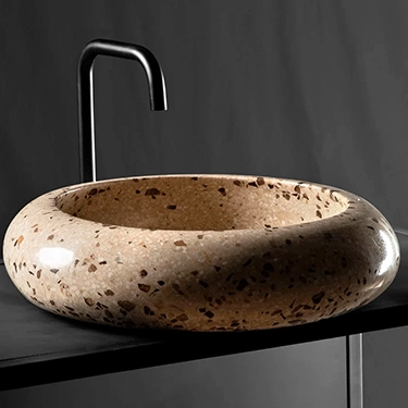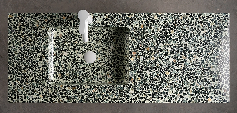 Divisée en 3 collections selon la taille des grains : M10 pour des marbres de 7/15 mm, M3 pour des grains de 5/7 mm et M1 (Granito TECH) avec des grains fins de 2/3 mm. Avec ce matériau exclusif nous fabriquons des carreaux, dalles, tables, plans de travail, lavabos et vasques moulées.